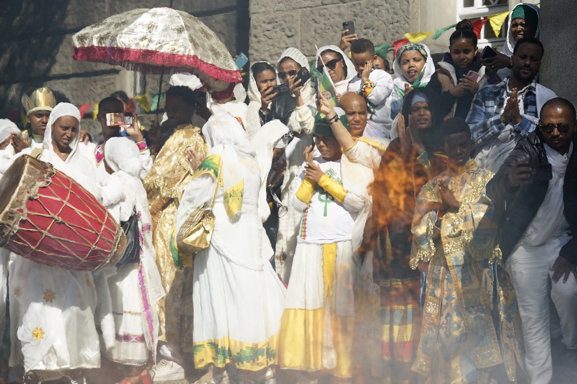 Die Menschen tanzen und Singen zur Ehre Gottes.https://www.zhkath.ch/kirche-aktuell/gemeindeleben/aethiopische-gemeinde-feiert-meskel/dsc1654.jpg/viewhttps://www.zhkath.ch/kirche-aktuell/gemeindeleben/aethiopische-gemeinde-feiert-meskel/dsc1654.jpg/@@download/image/dsc1654.jpg-reduced.jpg