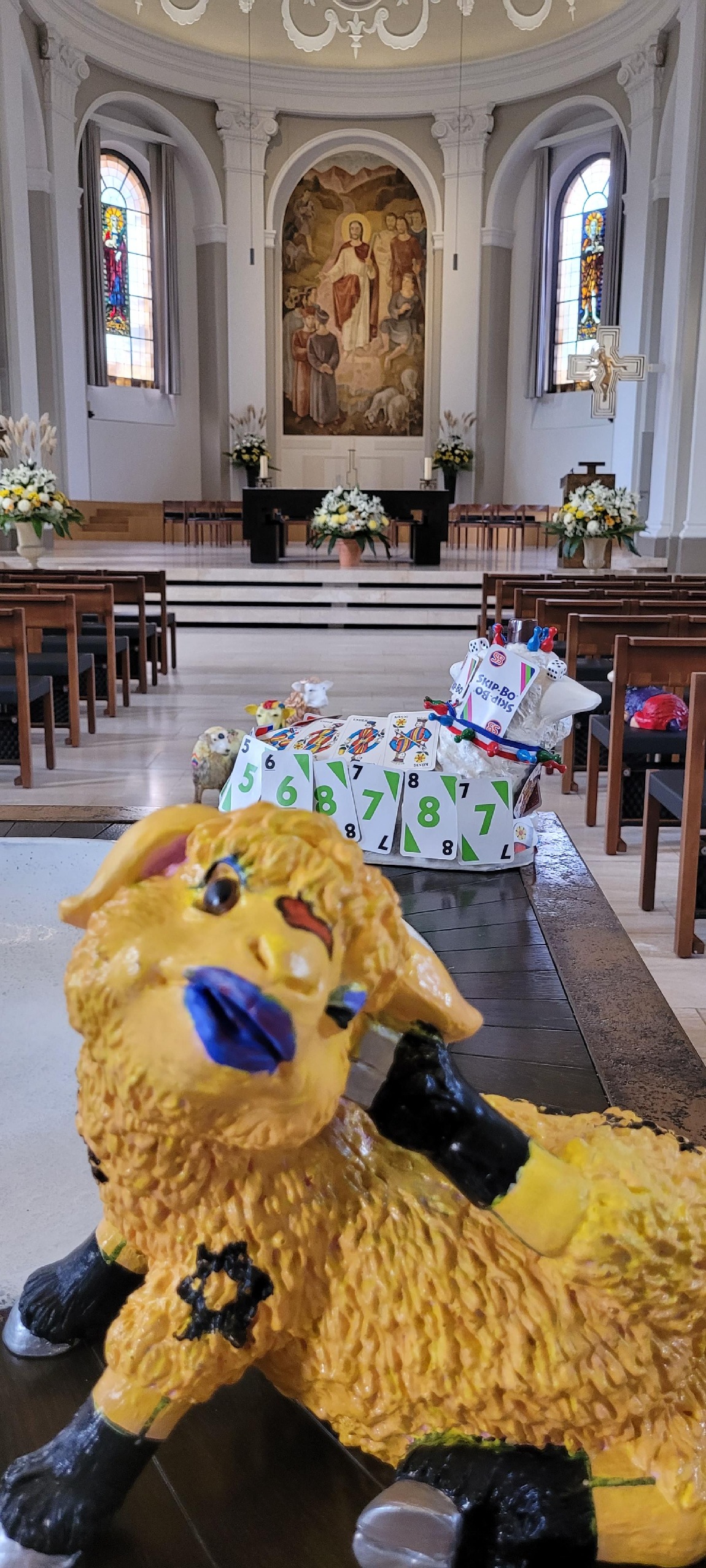 Das interreligiöse Friedenslamm wurde von einem Oberstufenschüler zusammen mit Pfarrer Marcel von Holzen gestaltet. Foto: Saskia Richter